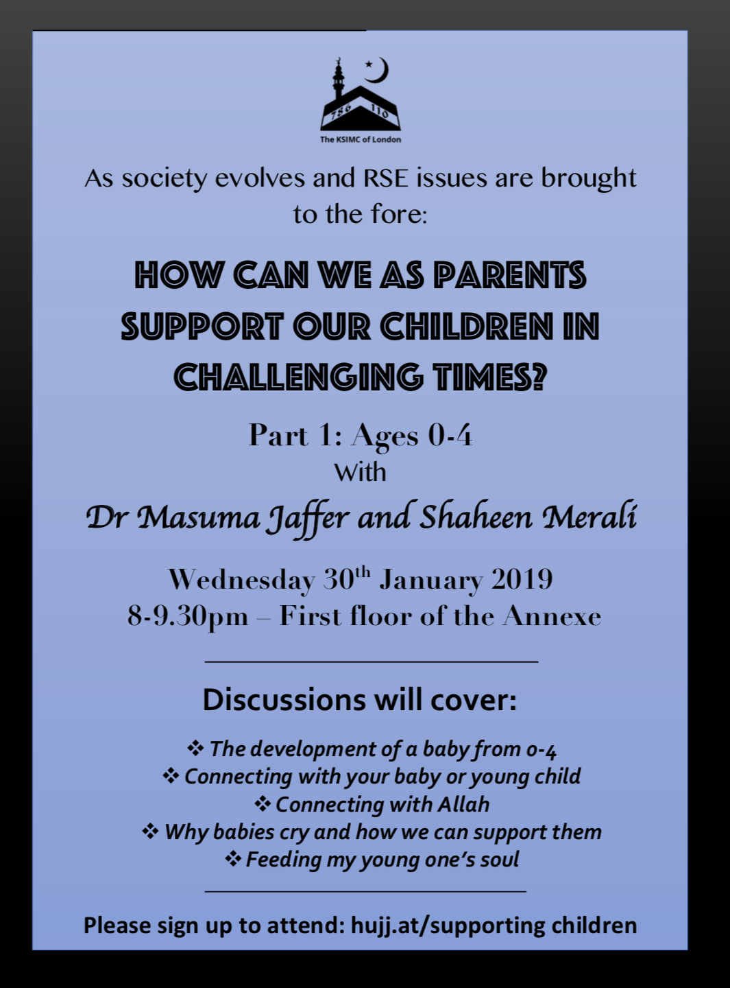 In: Education, HujjatJoin us for a series of five sessions, focusing on the different stages of childhood, plus an oppurtunity for personal appointments.