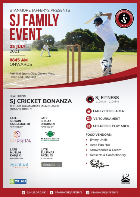 We would like to inform everyone about the upcoming Stanmore Jafferys FAMILY EVENT on 25th July 2021 at Hatch End Cricket club.